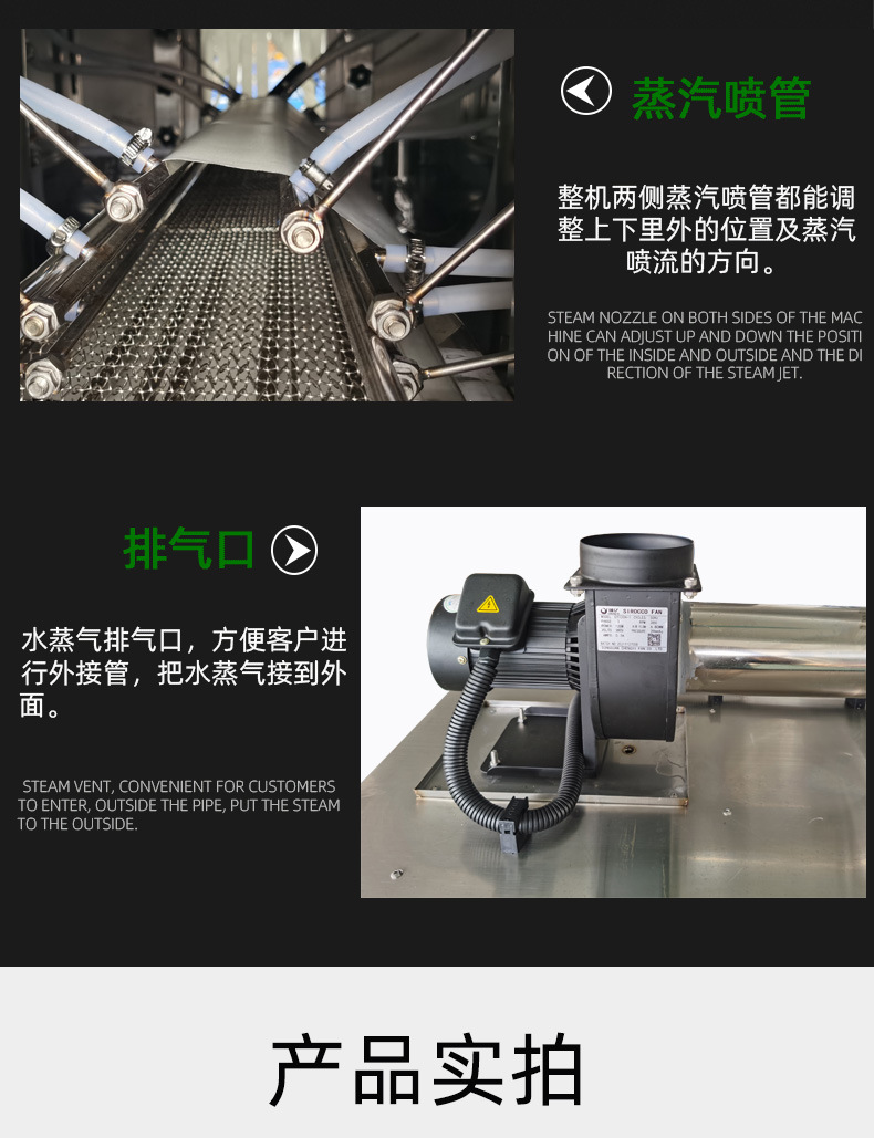 | 輸送速度 | 5~15m/min | 速度與蒸汽量需匹配,例如食品包裝常采用 8m/min 配合 100℃蒸汽。 |
