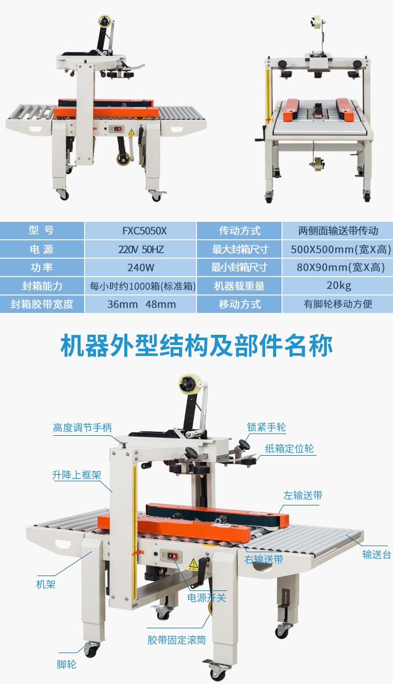 FXC5050X電商爆款1-12號(hào)小紙箱封箱機(jī) 全自動(dòng)封箱機(jī)