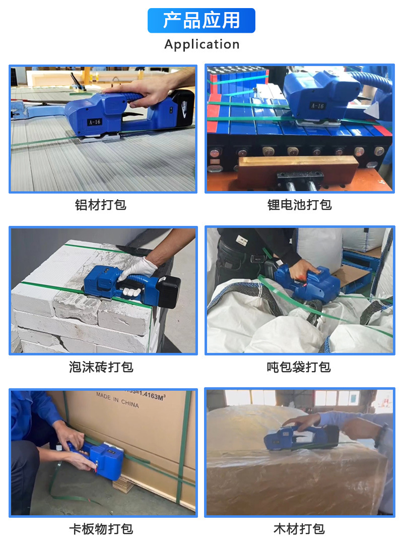 一鍵式電動打包機A-16手提式打包機適用范圍廣:如木材、鋼材、鋁材、家具、陶瓷、石材等產品打包。 ●隨意移動:隨意移動性較好,使用方便