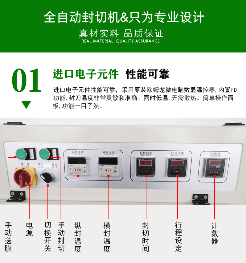 全自動封切收縮機集技術、性能、操作簡便性于一身,無疑是包裝行業中的一次重要突破。它將為各大企業帶來更高效、更環保、更安全的包裝解決方案,成為各企業發展道路上不可或缺的伙伴。 全自動封切機是一款高度自動化的包裝設備,集上壓、下切、封口一體化,廣泛適用于各類食品、醫藥、化妝品等行業的包裝。 全自動封切機采用優質不銹鋼材料制成,結構牢固、美觀大方,耐用性極高。其獨特的自動跟蹤系統能夠確保包裝袋尺寸的準確性,提高包裝效率和產品質量。封切機配備高效真空泵,可實現封口迅速、粘合牢固,有效防止包裝袋密封不嚴、空氣進入等